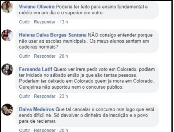 “Tem que cancelar esse concurso”, “Faltou seriedade e respeito”, “Tem que devolver o dinheiro”.