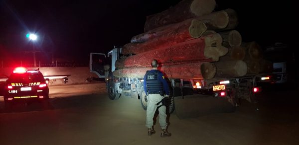 Enquanto realizavam fiscalizações no km 49 da BR-421, em Monte Negro/RO, uma equipe da Polícia Rodoviária Federal (PRF) deu ordem de parada, às 22h30 de quinta-feira (1), a um caminhão que estava carregado com 17 toras de madeira.