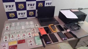 Durante a revista ao veículo, foram encontrados cartões do Santander, celulares, maquina de cartão, impressora, 3 relógios, carimbo com a impressão da empresa Gol Linhas Aéreas, 2 notebooks (o HP possuía sites abertos no Google Chrome, em site usado para falsificar documentos e o programa CorelDraw com documentos abertos, todos falsos) e uma carta da Magazine Luíza usada para abertura de contas bancárias.