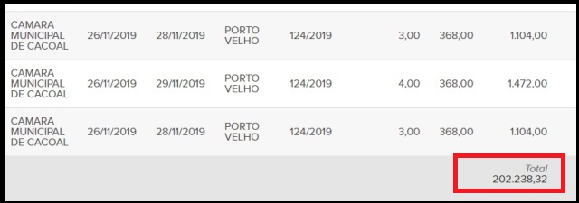 Já em 2020, até o momento, o valor gasto é de R$ 42.439,25, incluindo viagem do próprio Corá, que saiu de Cacoal na última segunda-feira, 21 de setembro, com destino a Porto Velho, e com previsão de retorno à cidade hoje, quinta-feira, 24.