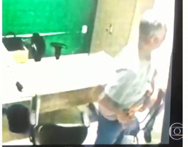A imagem mostra Daniel na companhia da prefeita numa sala, onde ela pega o dinheiro e coloca na bolsa, em outra imagem, Daniel está sozinho numa sala, pega o valor e coloca dentro da calça.