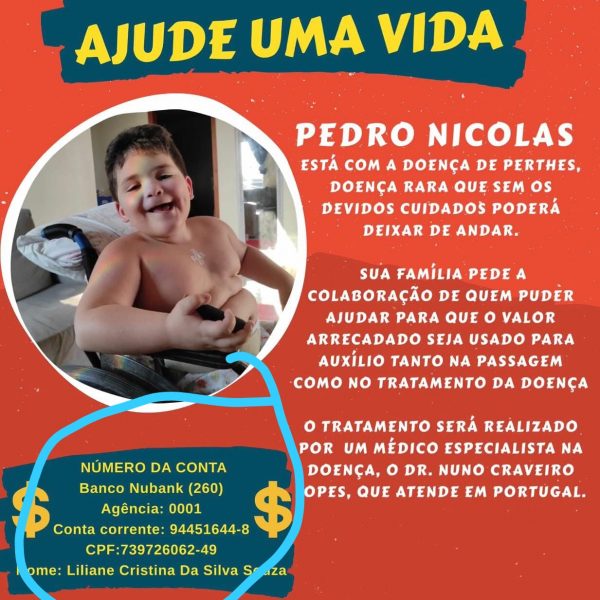O vilhenense Pedro Nicolas foi diagnosticado com uma doença rara chamada Perthes, que causa necrose óssea das articulações e se não tratado a tempo pode ocasionar na perda da mobilidade.