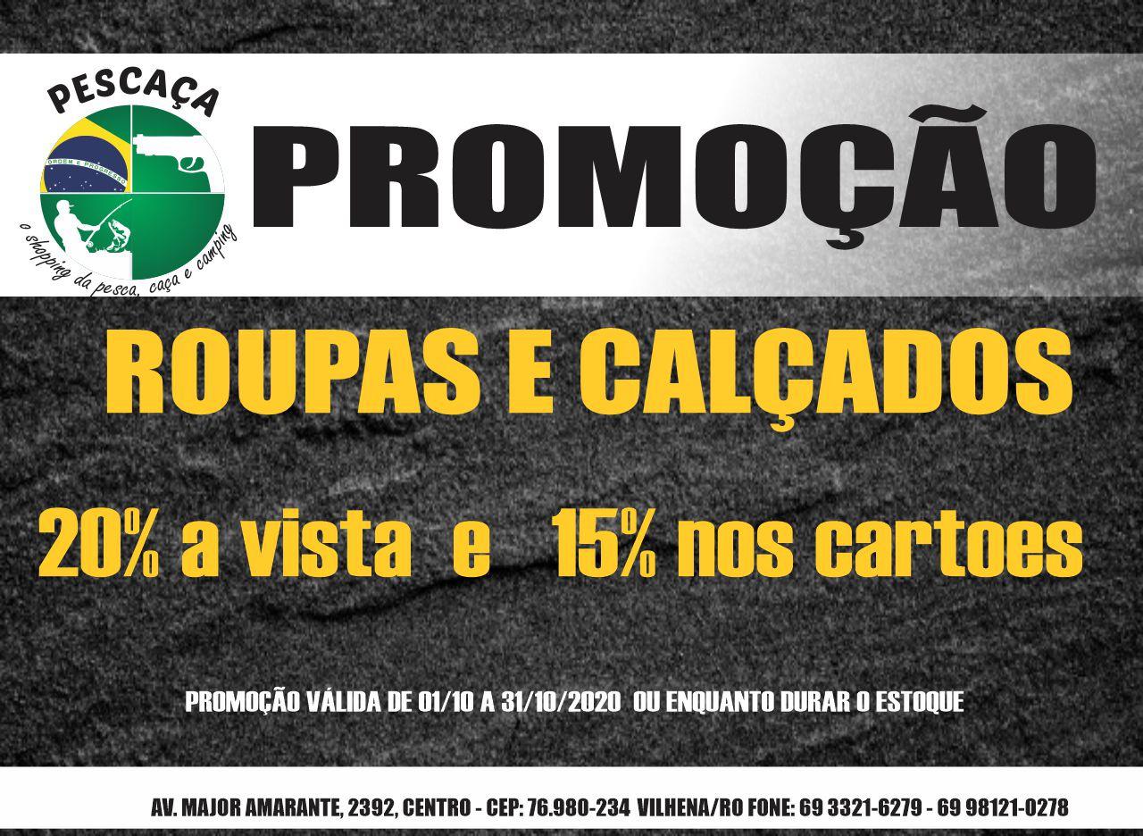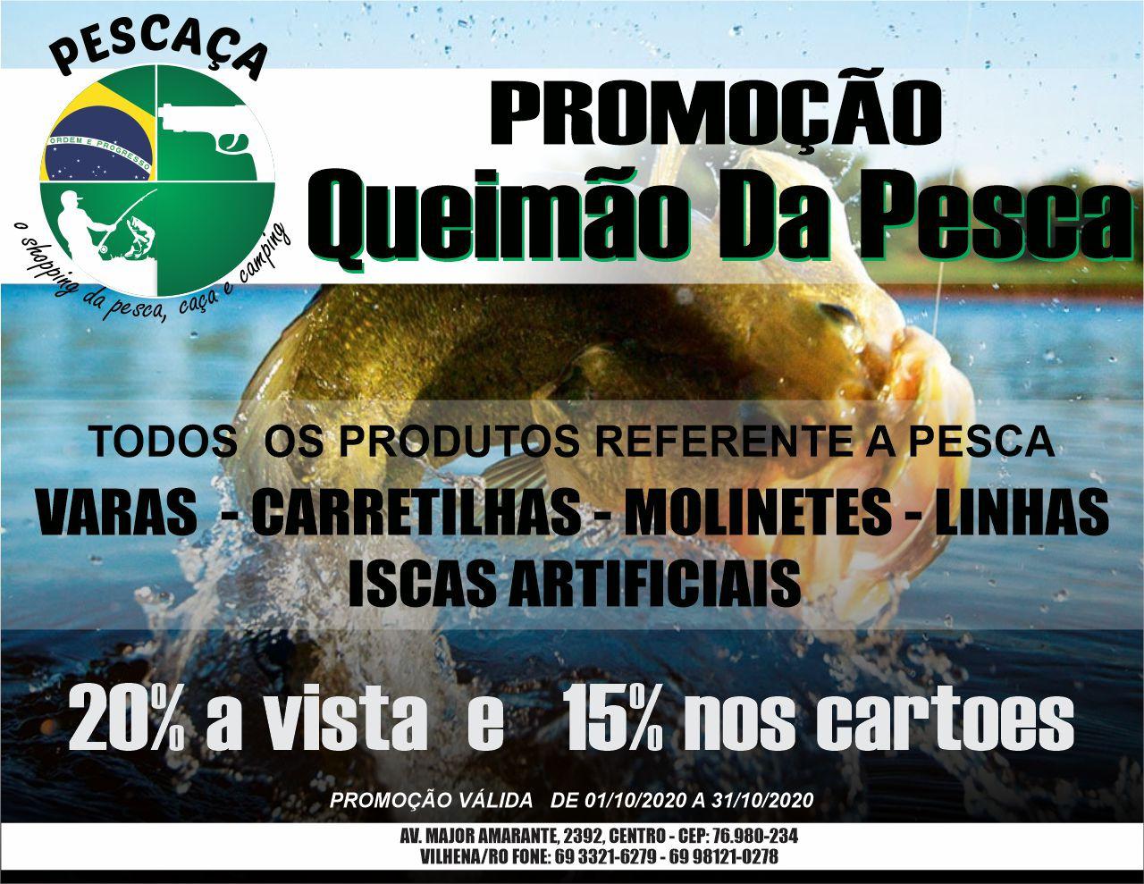 Durante todo o mês de outubro, a Pescaça estará com 20% de descontos a vista ou 15% nos cartões em roupas, calçados e artigos de pesca.