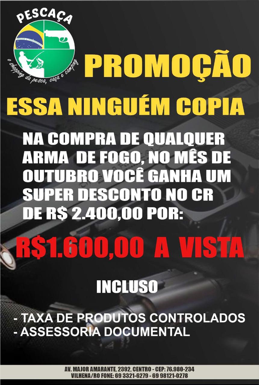 E para quem adquirir uma arma de fogo, pagará apenas R$ 1,6 mil a vista para tirar o Certificado de Registro (CR), com taxa de produtos controlados e assessoria documental inclusa.