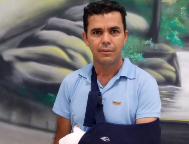 Ele enviou ao site essa fotografia no último sábado, 28, e explicou que fraturou o braço após um acidente na cidade, onde para não bater numa criança que atravessou em sua frente, freou bruscamente a moto que conduzia, com isso, caiu e se machucou.