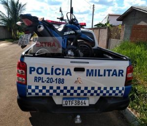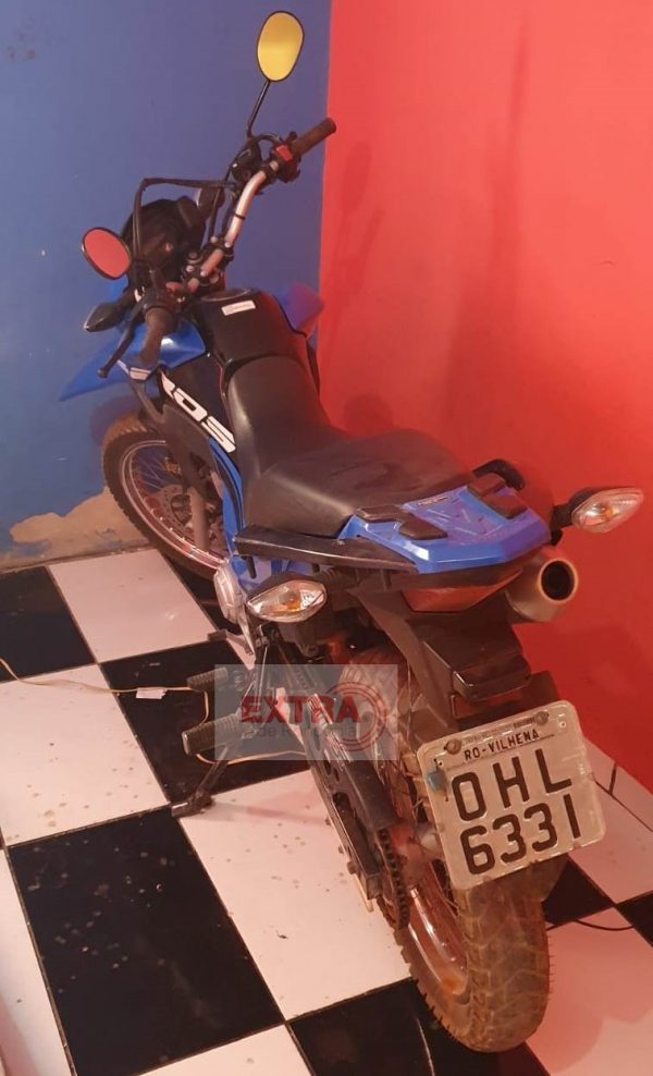 Em incursão no imóvel, foi localizada e recuperada a motocicleta Honda/Bros 160 de cor azul placa OHL-6331 Vilhena, que havia acabado de ser tomada em assalto.