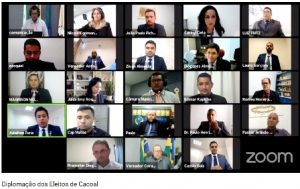 Por causa da pandemia da covid-19, a solenidade foi realizada por videoconferência e conduzida pela juíza eleitoral Emy Karla Yamamoto Roque.