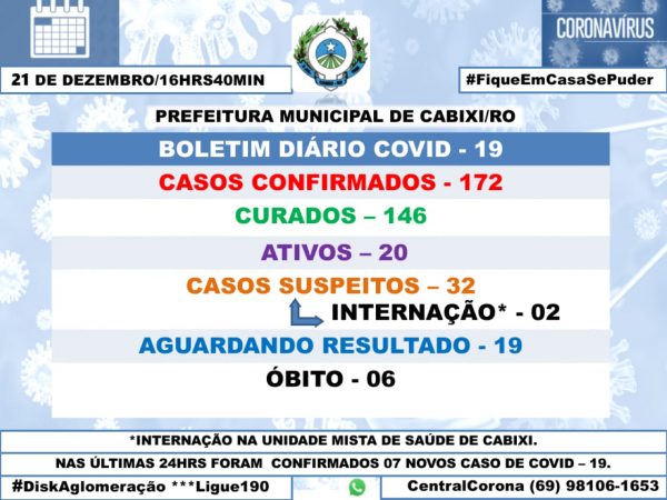 Na tarde desta segunda-feira, 21, a Secretaria de Saúde de Cabixi, divulgou o boletim epidemiológico, no qual aponta um aumento significativo de casos de coronavírus naquele município.