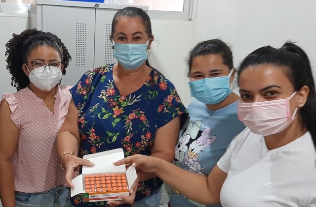 A prefeita Valéria Garcia e a secretária municipal de saúde, Thaciany Nery da Silva, receberam as doses.
