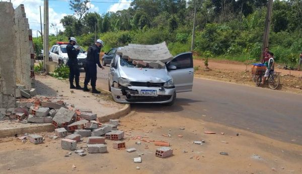 Parte do muro ficou em cima do para-brisa do veículo, o motorista ainda tentou fugir com o carro, mas devido o pneu ter estourado, e parte do muro estar em cima do automóvel, não conseguiu.
