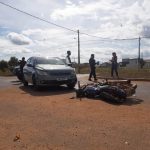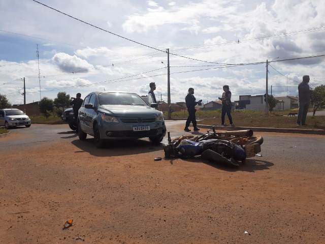 Acidente envolvendo um carro VW Gol e uma moto Honda CG, aconteceu na tarde desta sexta-feira, 11, na rotatória da Avenida Dedimes Cechinel (Perimetral) com a Avenida 1705, na divisa do bairro Jardim Primavera, com Cidade Verde II, em Vilhena.