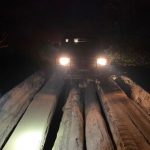 Um homem foi preso em flagrante por porte ilegal de arma de fogo, enquanto transportava caminhão com toras de madeira.