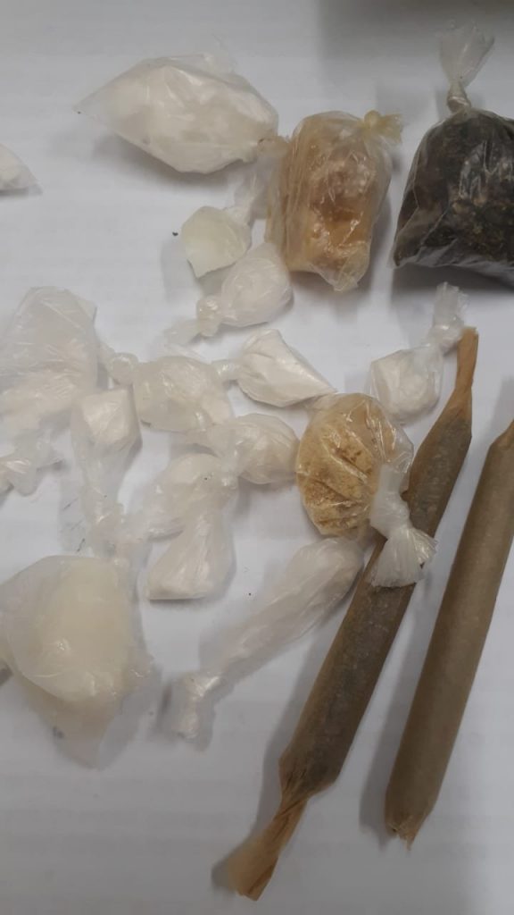 Em averiguação, foi possível recolher alguns invólucros da mesma droga presos no cano da pia e outros de crack e maconha espalhados pela casa.