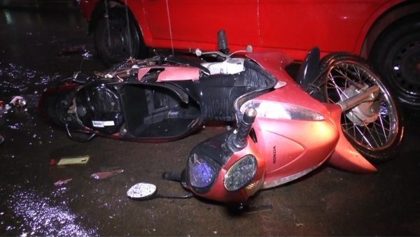 No momento chovia muito, o que acabou contribuindo com a ocorrência do acidente, que deixou a motoneta destruída. O local possui sinalizações de trânsito totalmente visíveis para quem trafega pelo local.