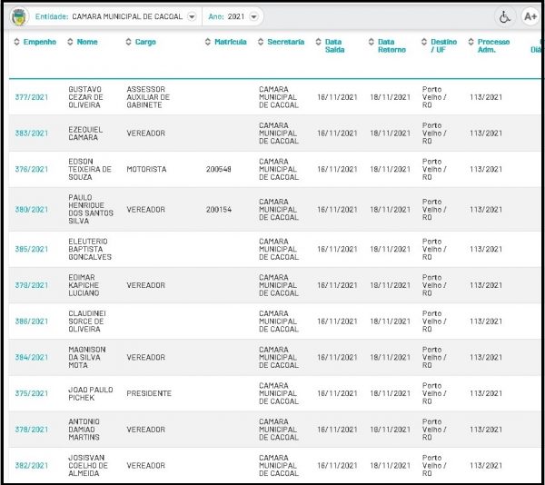 Conforme o site do Portal da Transparência, uma comitiva de Cacoal, formada por 7 vereadores e 4 servidores da Casa de Leis, está confirmada a participar do evento. Estarão na capital João Paulo Pichek (Republicanos), Ezequiel Câmara (PP), Paulo Henrique da Silva (PTB), Edimar Kapiche (PSDB), Magnison da Silva Mota (PSC), Antônio Damião Martins (Podemos), Josisvan de Almeida (PSC)