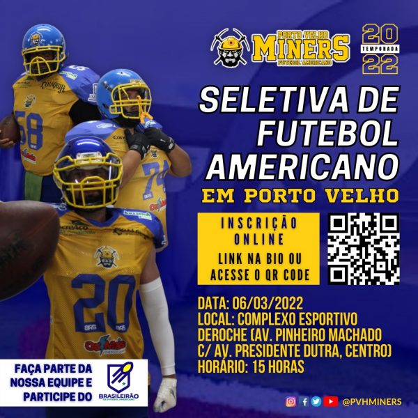As inscrições para seletiva estão sendo on-line, pelo http://bit.ly/seletivapvhminers