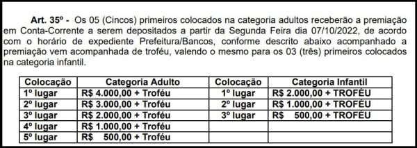 Com premiação em dinheiro e troféus, o evento ocorrerá nas categorias infantil e adulto, e a grande final ocorrerá em 06 de novembro na Estância Guaporé.