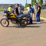 Acidente envolvendo uma moto Honda NXR Bros 160 e um carro Honda Civic aconteceu na manhã deste sábado, 15, no Bairro Jardim América, em Vilhena.