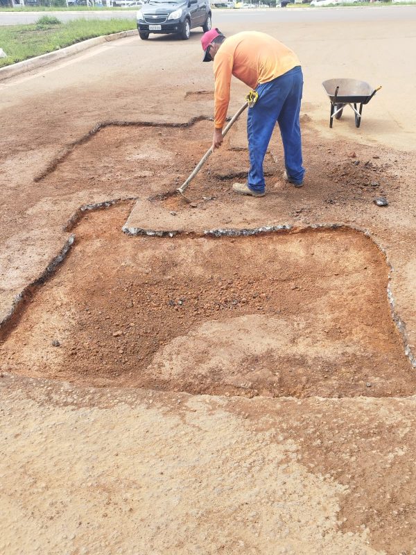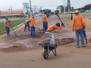 Em conjunto com o Projeto Semear Ressocializar a Secretaria Municipal de Obras começou esta semana um mutirão de recuperação das vias urbanas pavimentadas na cidade, consertando buracos e danos nas pistas, em Vilhena.