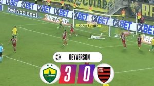 Matheus Alexandre abriu o placar logo nos primeiros segundos da etapa final. E Clayson, aos 9 do segundo tempo, ampliou para o Dourado com assistência de Deyverson. O atacante eterno carrasco do Flamengo ainda deixou sua marca aos 35 do segundo tempo, fechando a conta.