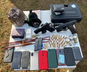 Foram cumpridos 10 mandados de busca e apreensão em Rondônia e no Paraná, expedidos pela Subseção Judiciária de Vilhena/RO. Durante a ação, foram apreendidas armas de fogo, munições, pedras sem comprovação de origem, celulares, bem como apetrechos utilizados na atividade de garimpo.