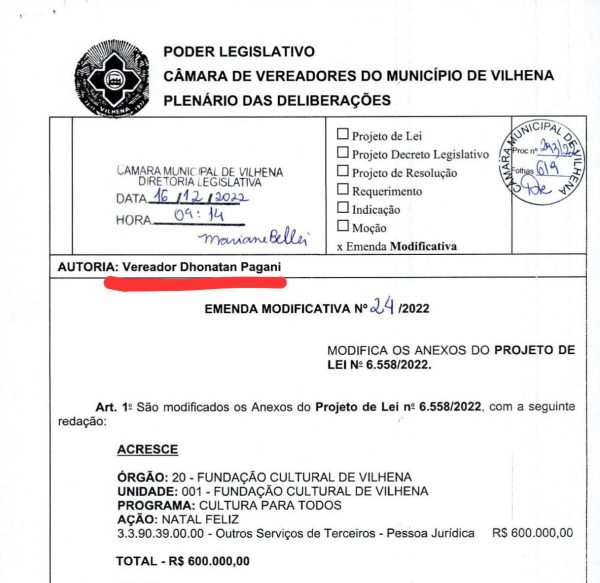 A emenda ao orçamento, que foi aprovada por unanimidade na Câmara Municipal, tem como objetivo promover a magia do Natal e proporcionar momentos de alegria e confraternização para a população de Vilhena. Com o valor, serão realizadas diversas atividades, como a decoração das ruas e praças da cidade entre outras ações.