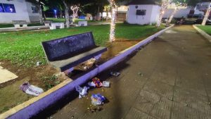 “Alguém precisa tomar uma providência, não dá pra gastar esse tanto de dinheiro com iluminação e ficar desse jeito, tem andarilho ingerindo bebida alcoólica e deitado no meio da praça, local onde as famílias vão com crianças para tirar fotos”, frisou o internauta.