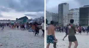 Briga generalizada ocorreu na praia de Copacabana REPRODUÇÃO/REDES SOCIAIS