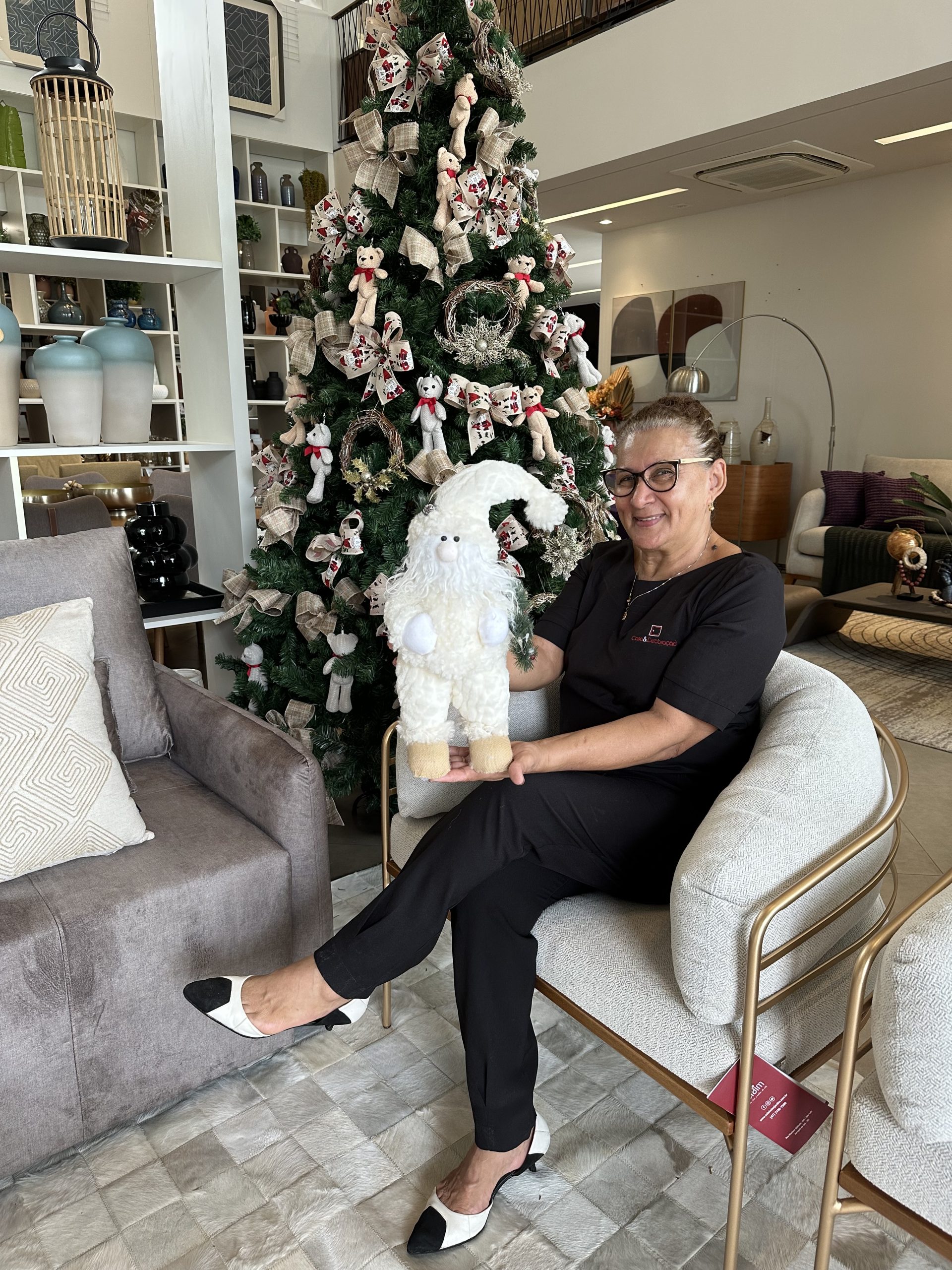 BLACK CHRISTMAS CASA & DECORAÇÃO    Já é sucesso a tradicional BLACK CHRISTMAS da CASA & DECORAÇÃO em Cacoal, a maior loja de móveis e decoração de Rondônia, com lindíssimos showrooms onde se encontra tudo para deixar qualquer ambiente de casa ou de trabalho mais lindo ainda. E tem belas opções de presentes para as festas de final de ano. Na foto a atenciosa consultora de vendas Belita Ferreira mostra uma linda decoração natalina, entre as inúmeras opções que a loja oferece.