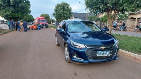 Acidente envolvendo um ciclista e um carro Chevrolet Onix, aconteceu no final da tarde desta segunda-feira, 27, no cruzamento da Avenida 1705 com a Rua 1712, no bairro Jardim Primavera, em Vilhena.