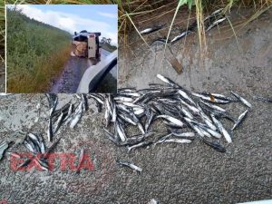 Cerca de 50 mil peixes ficaram espalhados pela pista