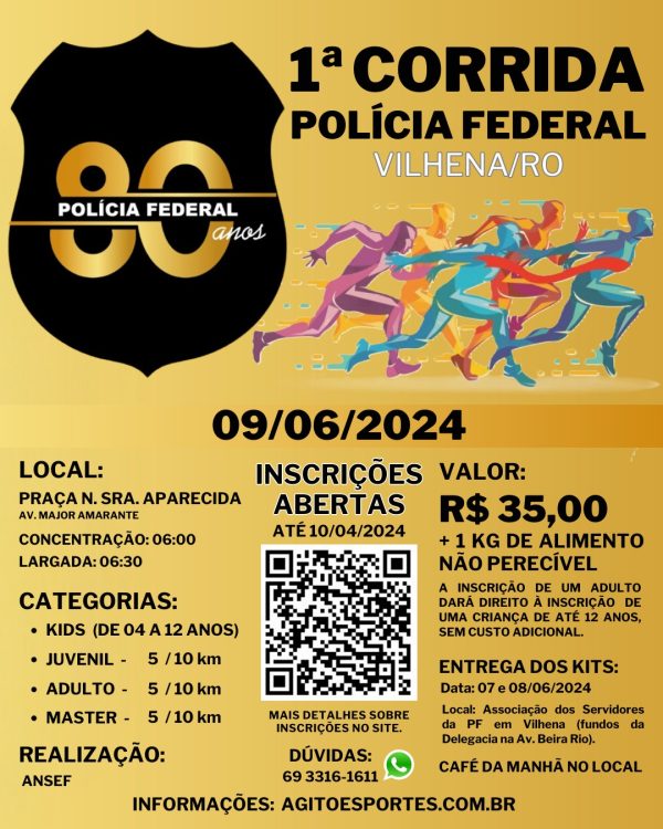 Esta é uma chance imperdível de mostrar suporte à Polícia Federal, enquanto se desfruta de uma manhã repleta de atividades físicas e divertimento. Junte-se a nós para fortalecer os laços da comunidade e promover um estilo de vida mais saudável.