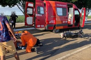 O Corpo de Bombeiros foi chamado e prestou socorro ao motociclista que sofreu fratura em uma das pernas.