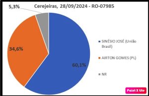 A nova amostragem, realizada pelo Instituto Haverroth de Política, Estatística e Comunicação (IHPEC), aponta Sinésio José (União Brasil) com 60,1% das intenções de voto, uma vantagem significativa sobre seu principal concorrente, Airton Gomes (PL), que aparece com 34,6%. Os eleitores indecisos ou que não responderam somam 5,3%. Na pesquisa, o IHPEC perguntou: Se as eleições fossem hoje, em quem você votaria para prefeito de Cerejeiras?