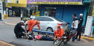 Motociclista é encaminhada ao hospital após colisão com carro em Vilhena