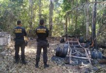 PF e IBAMA destroem acampamento e equipamentos usados na extração ilegal de madeiras em...