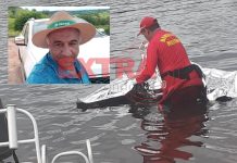O corpo Nelson Lione, de 58 anos, que caiu do barco durante pescaria no Rio Guaporé, em Pimenteiras do Oeste, na última segunda-feira, 20,...