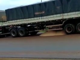Asfalto cede e carreta afunda no centro de Vilhena; guincho tentou socorrer, mas quase...