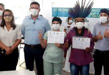 A técnica de enfermagem Rosangela Santos, de 52 anos, e o indígena Paulo Eduardo Mamaindê, de 57 anos, são as primeiras pessoas vacinadas contra...