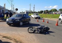 Um acidente envolvendo um carro e uma motocicleta ocorreu na noite desta sexta-feira, 14, no bairro Jardim Eldorado, em Vilhena.