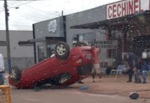 VÍDEO: carro capota após colisão no centro de Vilhena