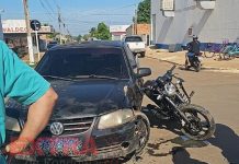 Colisão entre moto e carro deixa uma pessoa ferida em Vilhena