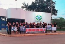 Esposas de policiais e bombeiros militares fazem manifestação em frente quartel de Vilhena