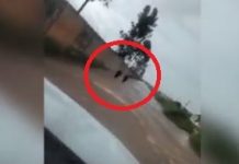 VÍDEO: Patrulha Reforço salva motociclista levado por correnteza durante forte chuva em Vilhena