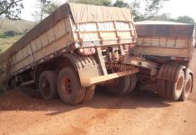 Carreta de empresa vilhenense se envolve em acidente entre Colorado e Cerejeiras