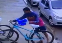 Câmera de segurança flagra homem furtando bicicleta em Vilhena