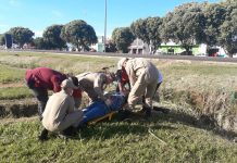 Bombeiros resgatam mulher que caiu em buraco ao tentar cruzar ponte improvisada às margens...
