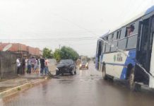 Carro e ônibus se envolvem em acidente no Jardim Eldorado em Vilhena