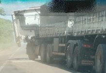 Carreta bate na traseira de outra em fila de operação tapa buraco na BR-364...