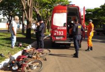Entregadora é socorrida ao hospital após bater em ciclista com duas crianças